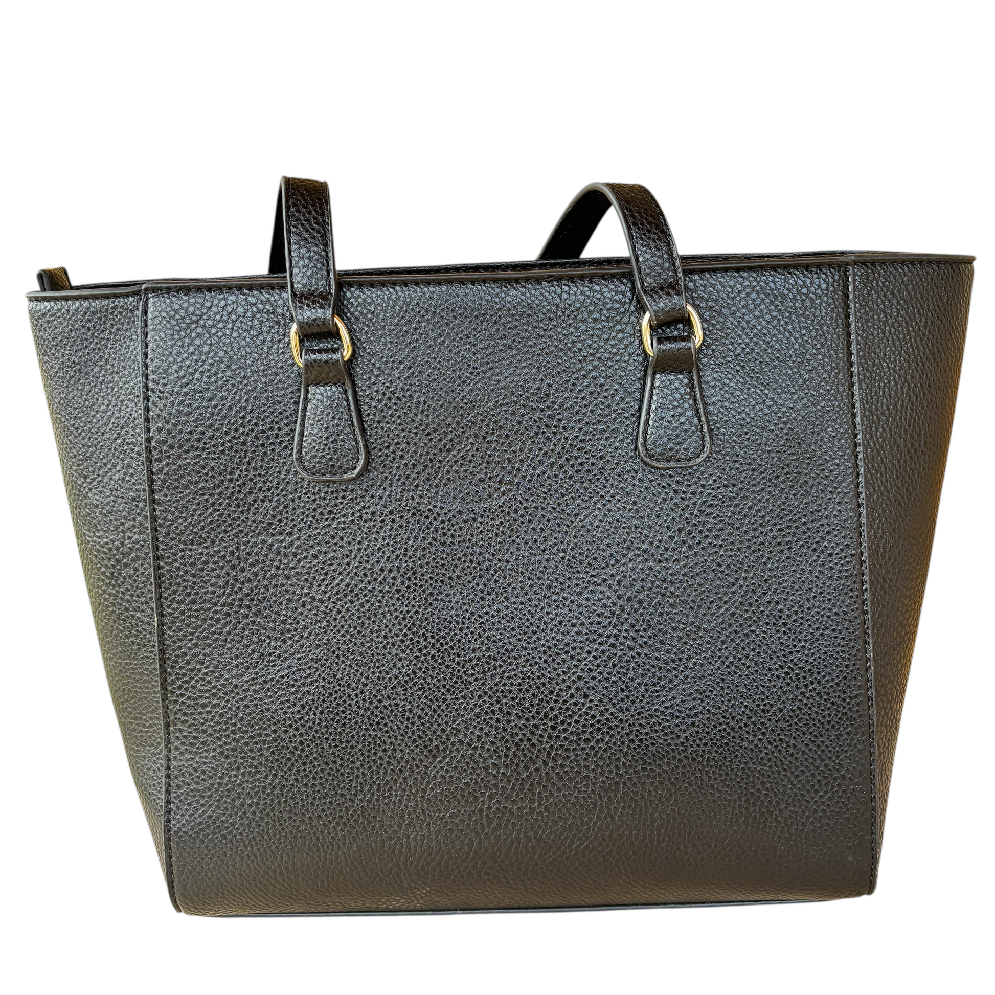 The Abby Black Tote expertly blends eco-conscious design with refined details. Crafted from upcycled, vegan materials, this tote features whipstitch accents and a subtle gold touch on the front handles for a sophisticated look. Fully lined inside, it offers durability and structure while maintaining a commitment to sustainable, cruelty-free fashion. Ideal for those who value both style and ethical craftsmanship.