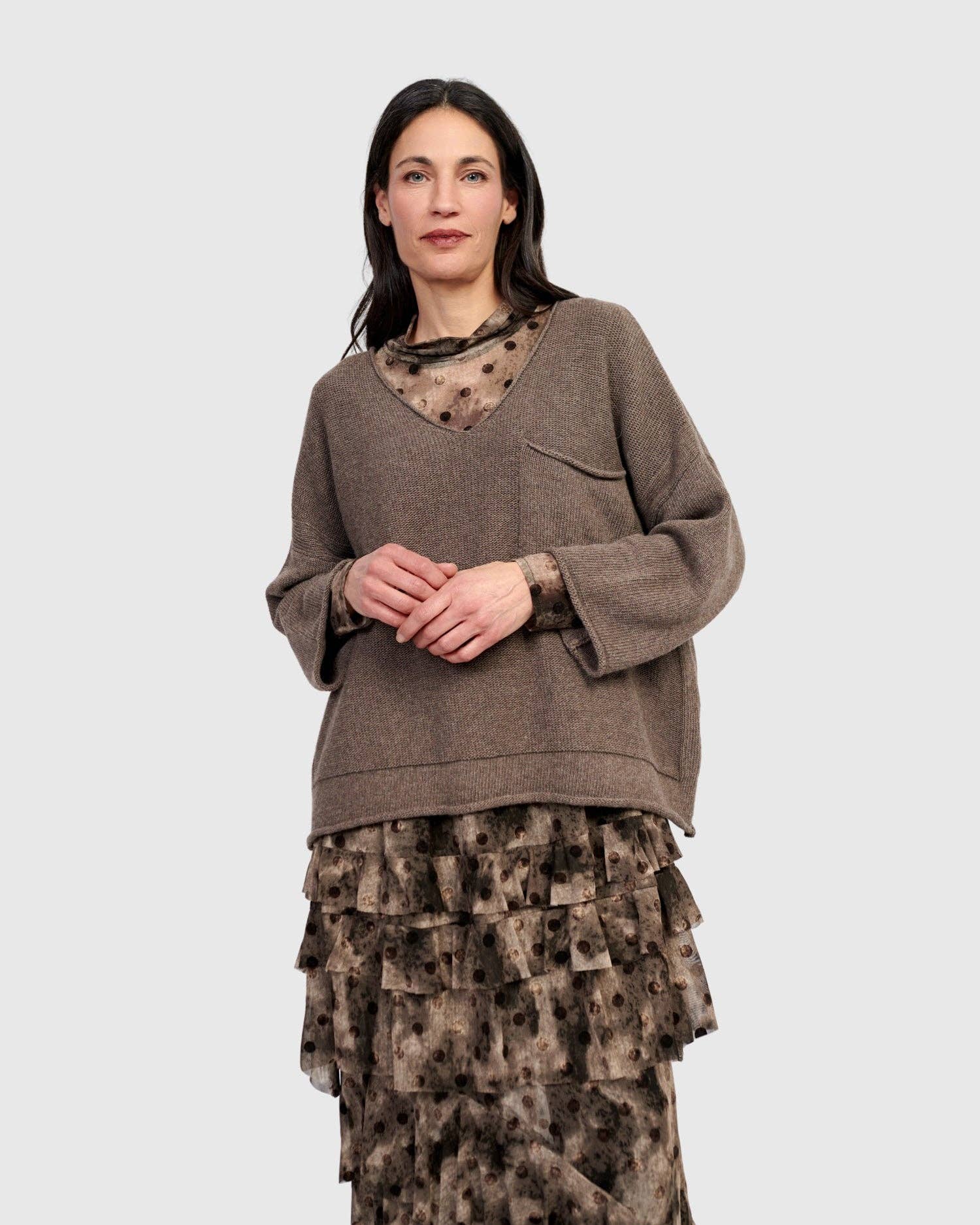 A refined layering piece with an effortless attitude, this sweater is shaped with a relaxed drape and a luxe cashmere-blend knit. The boxy cut, wide V-neck, and rolled finishes create a lived-in polish ideal for casual and elevated looks alike.
