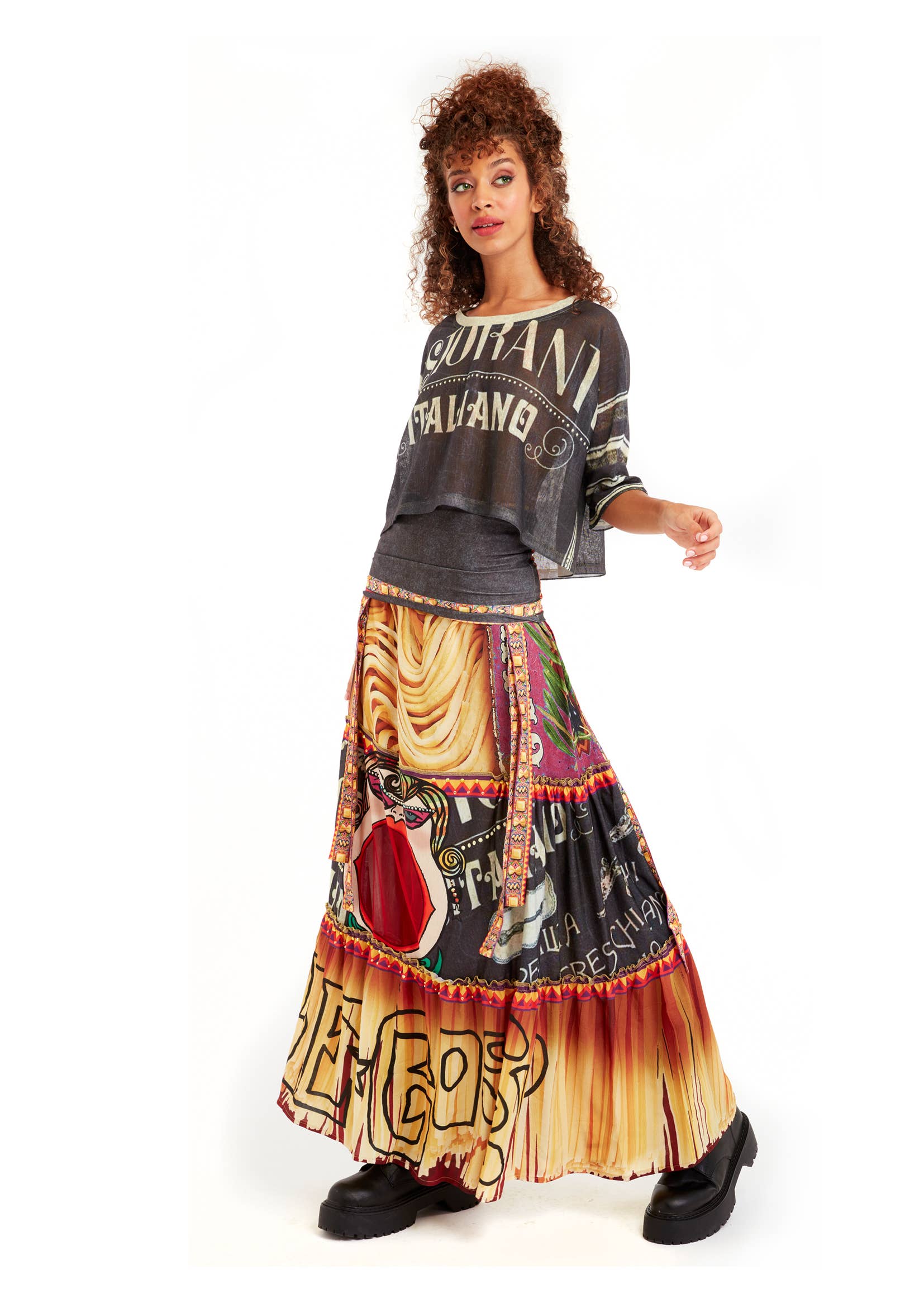 Cool and effervescent, our Blouse T Mini captures the essence of leisure with a whisper of sophistication. This crop top style blouse is so sleek that the gentle translucence of the fabric layers gracefully, giving you the versatility to dress up or down while maintaining an air of understated chic. The blouse sits above the waist but also can be special ordered up to 4-inches longer (+ $4.00). With every turn, catch a glimpse of the beautiful motifs and patterns that playfully nod to the collection's theme, making this blouse a perfect pairing for both casual outings and festive soirées. Model is 5'8" and is wearing a Size 1. True to size, Loose fit. All our items are hand-crafted and made to order, ensuring that every piece is as unique as its wearer. Please note that due to the meticulous attention to detail, our delivery times are around 4 weeks.
