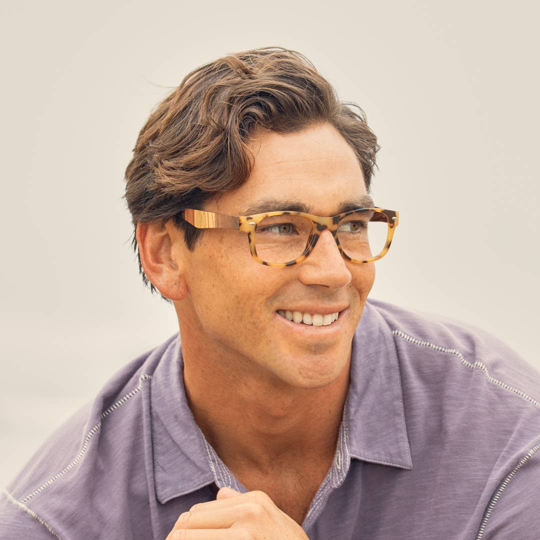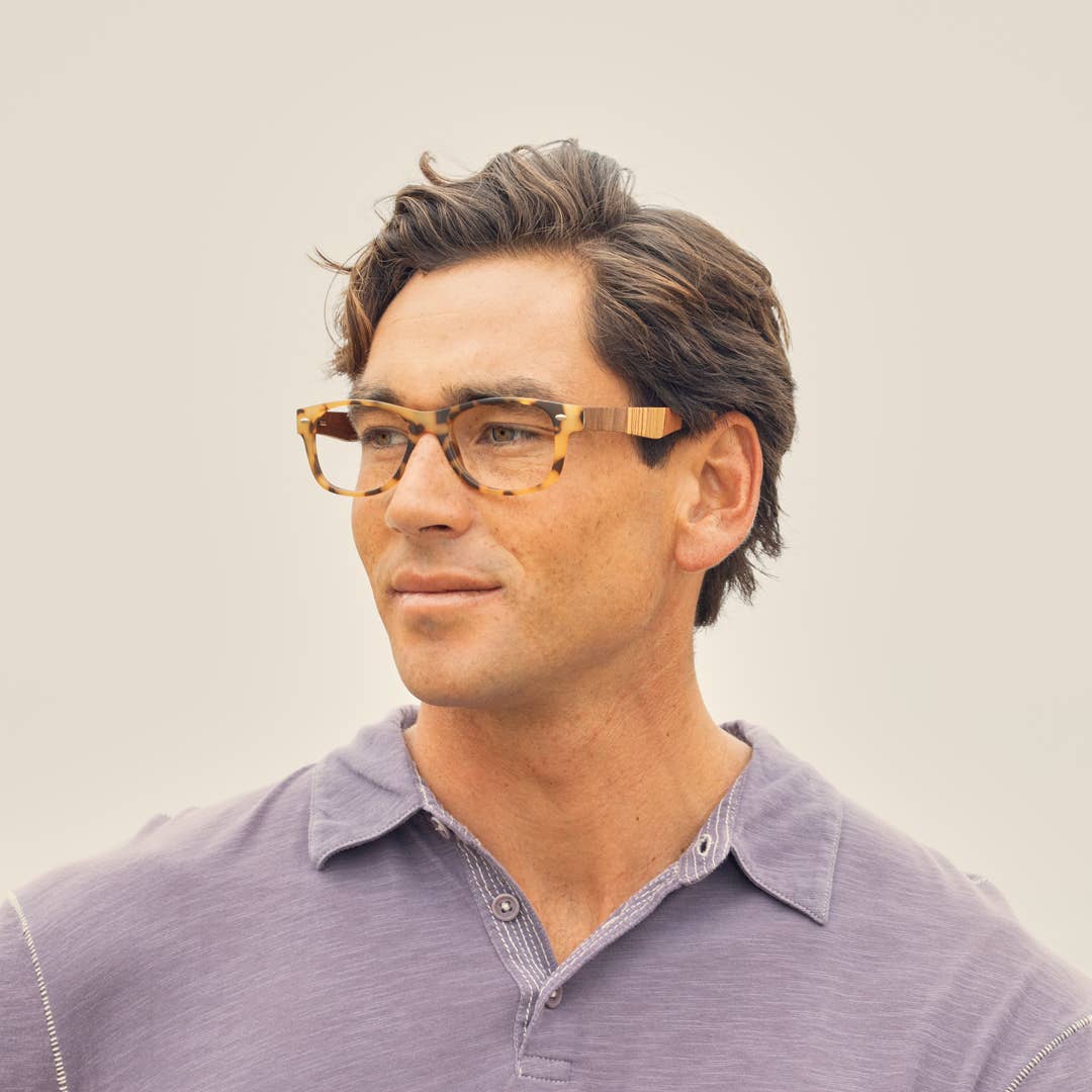 Say goodbye to tired eyes and hello to stylish frames with River Reading glasses! Featuring blue light filtering technology, our glasses block out 40% of harmful blue light rays to reduce eye strain and fatigue. With a classic square frame and elegant multi colored wood temples, River adds a touch of flair to any outfit, whether you're at work, out to dinner, or cooking at home. Upgrade your eyewear game with River!