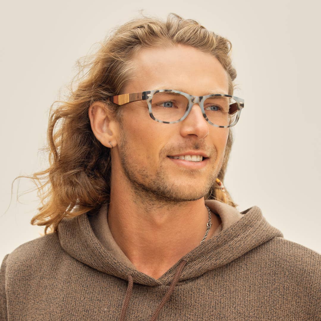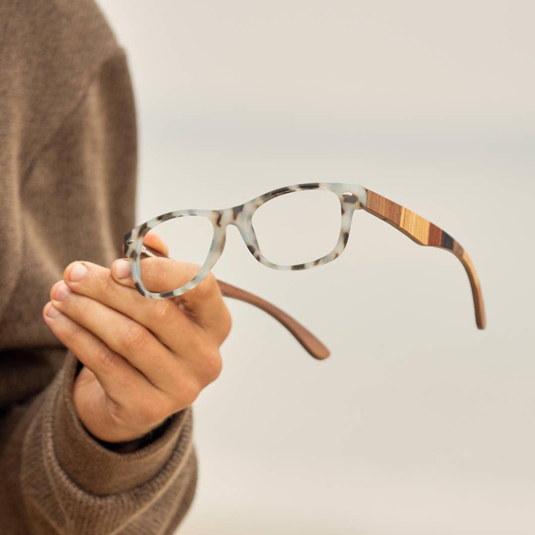 Say goodbye to tired eyes and hello to stylish frames with River Reading glasses! Featuring blue light filtering technology, our glasses block out 40% of harmful blue light rays to reduce eye strain and fatigue. With a classic square frame and elegant multi colored wood temples, River adds a touch of flair to any outfit, whether you're at work, out to dinner, or cooking at home. Upgrade your eyewear game with River!