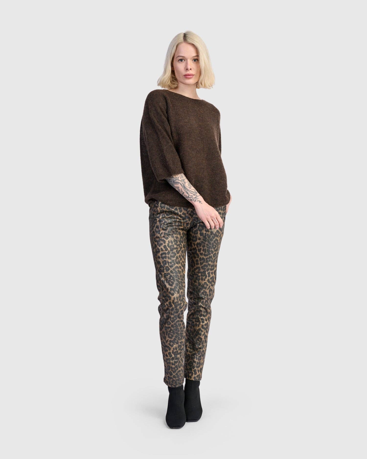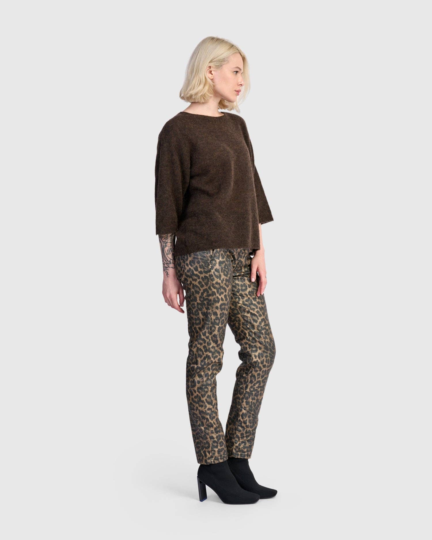 Rendered in rich coffee tones, this core pullover sweater delivers airy warmth in a cropped, boxy silhouette. The featherlight alpaca blend brings a luxe touch to everyday layering with elbow-length ease.