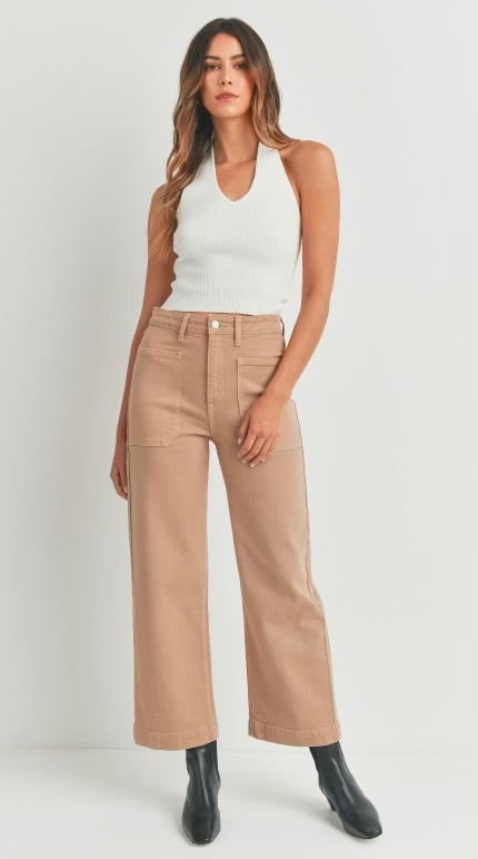Etienne Marcel Tan Jeans with spacious front pockets.