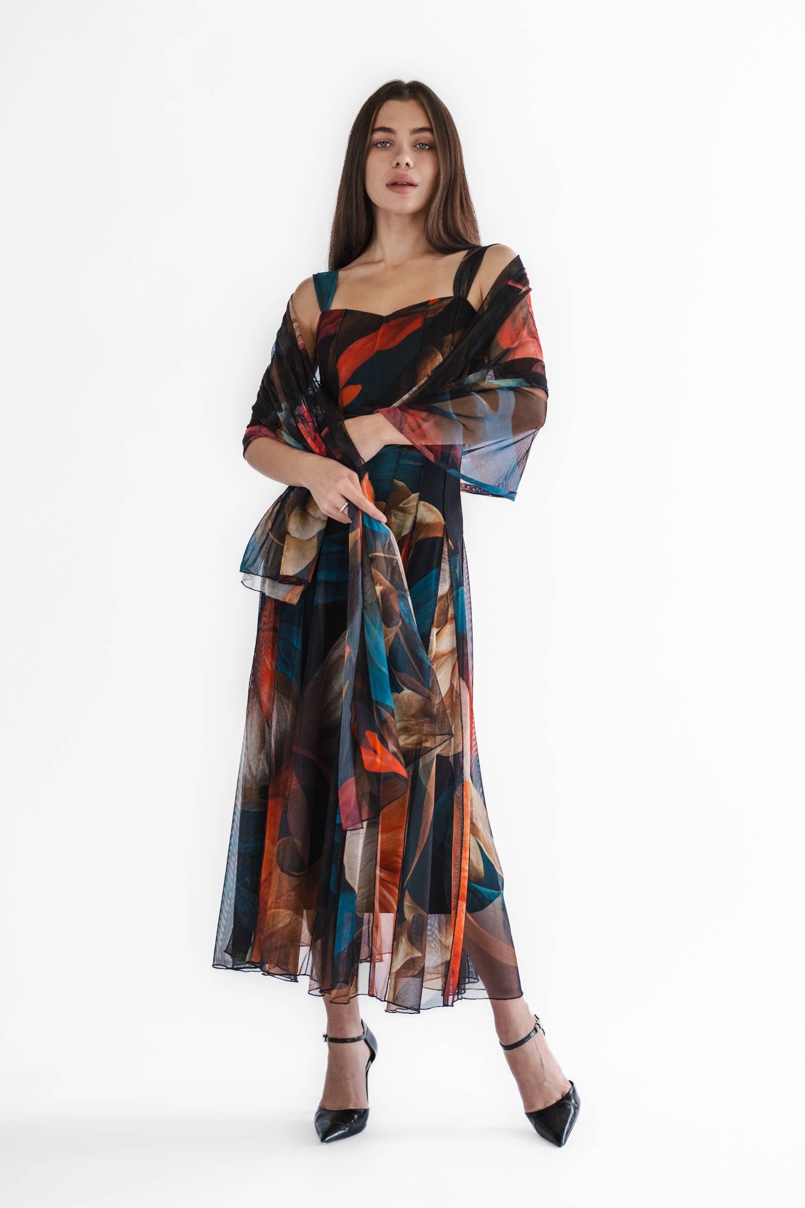 DELILA Long & Wide Print Mesh Shawl Stole Wrap - Elana Kattan