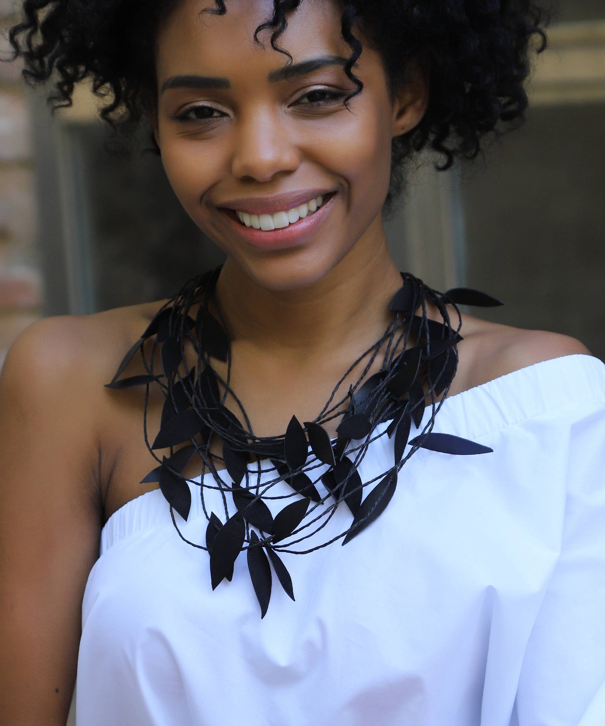 ► Handmade Leather Leaf Women Necklace and Earrings Set. Special Casual Design..