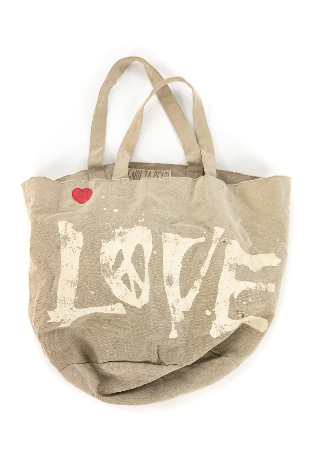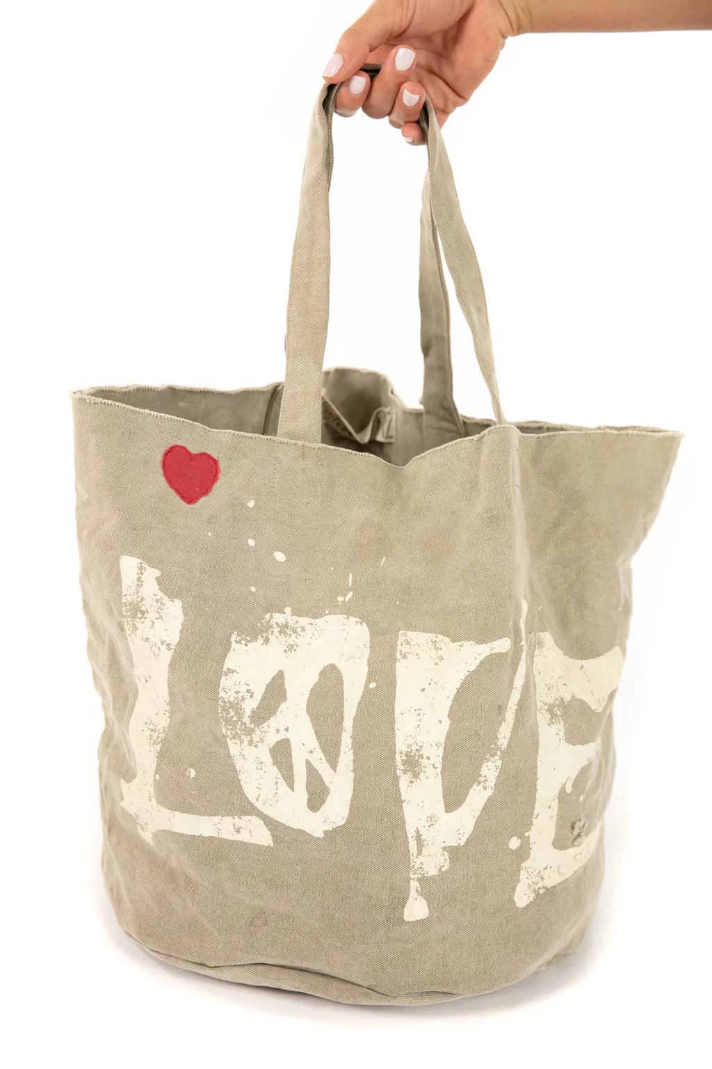 Let our bold take on a classic bucket underline your every outing. Roomy & rugged, ready to carry all you really need: LOVE!