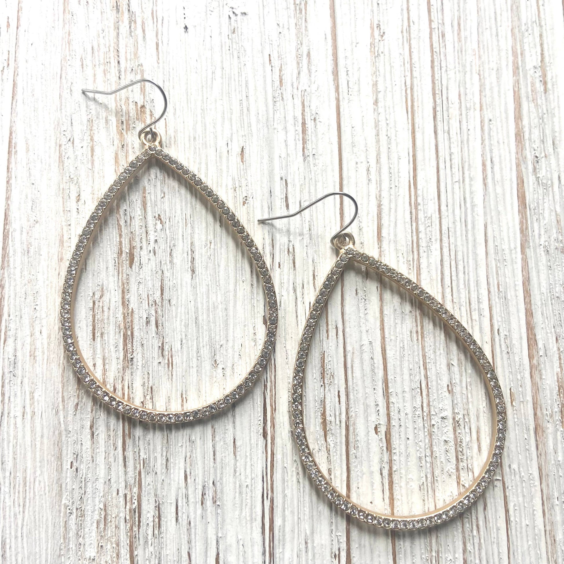 These matte gold with clear crystals statement earrings are so sparkly and fun to wear! Light weight & Hypoallergenic 62”