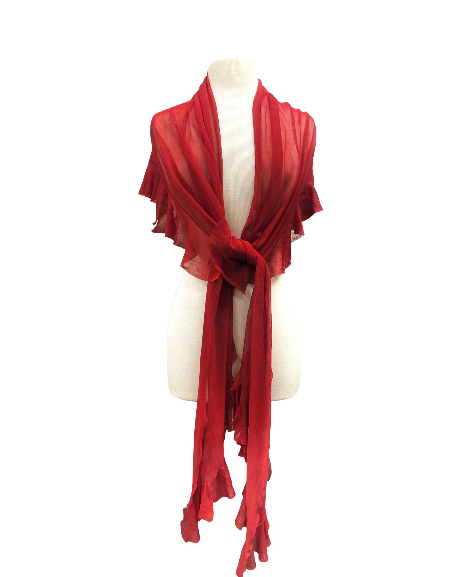 MAXIMA Ruffled Long Sheer Shawl Stole Wrap SCARLET - Elana Kattan