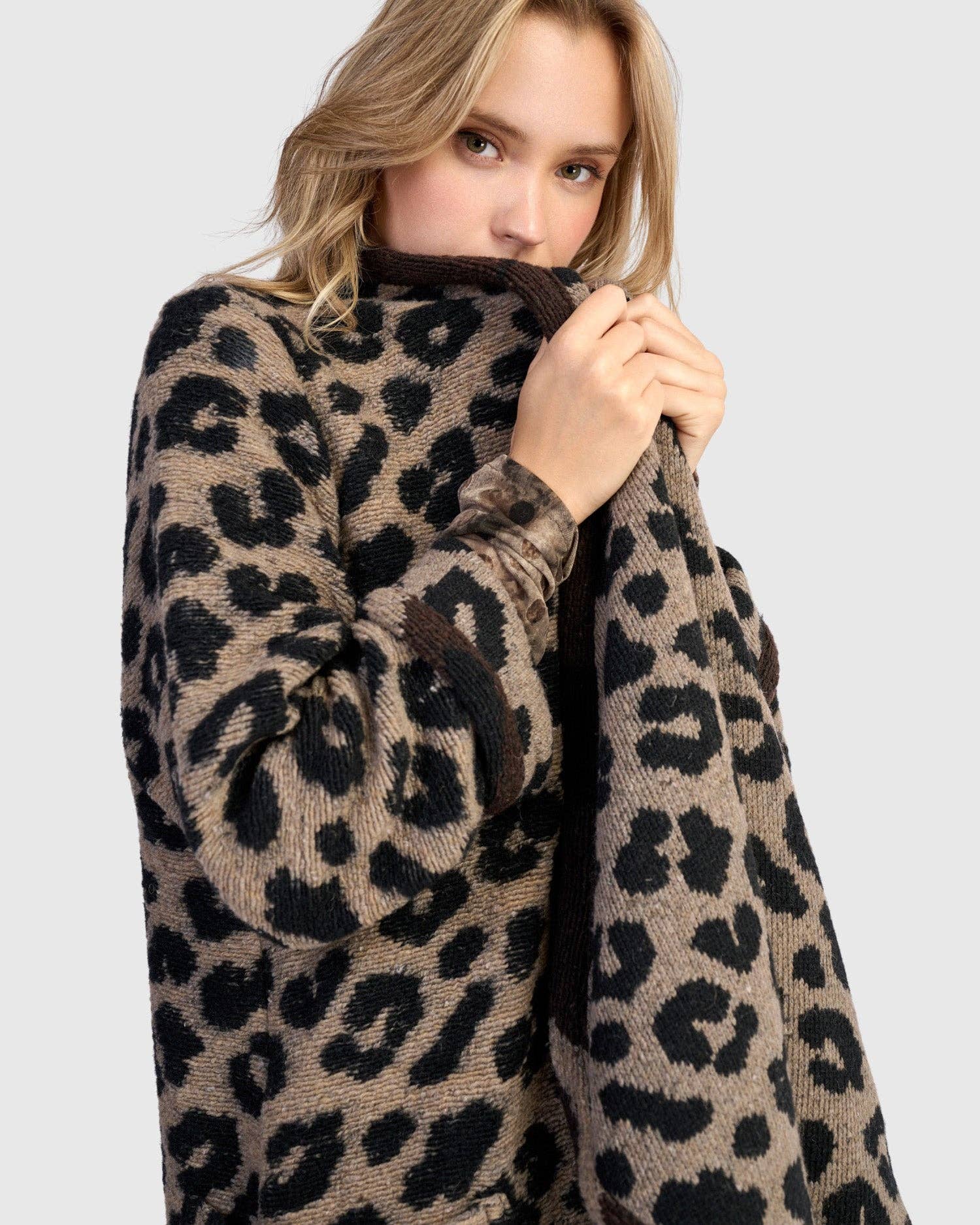 The Sable Coat brings ease and movement to cool-weather dressing with its flowing A-line shape and soft draped lapels. Crafted in cozy brushed knit with a subtle leopard print, it balances structure with fluidity. The open front design, set-in sleeves, and patch pockets make it both practical and polished for layering over any outfit.