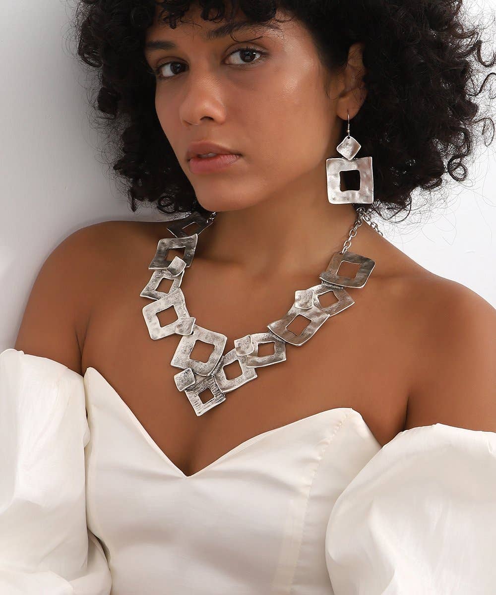► Silver Plated Women Necklace and Earrings Set. Special Bohemian Design..