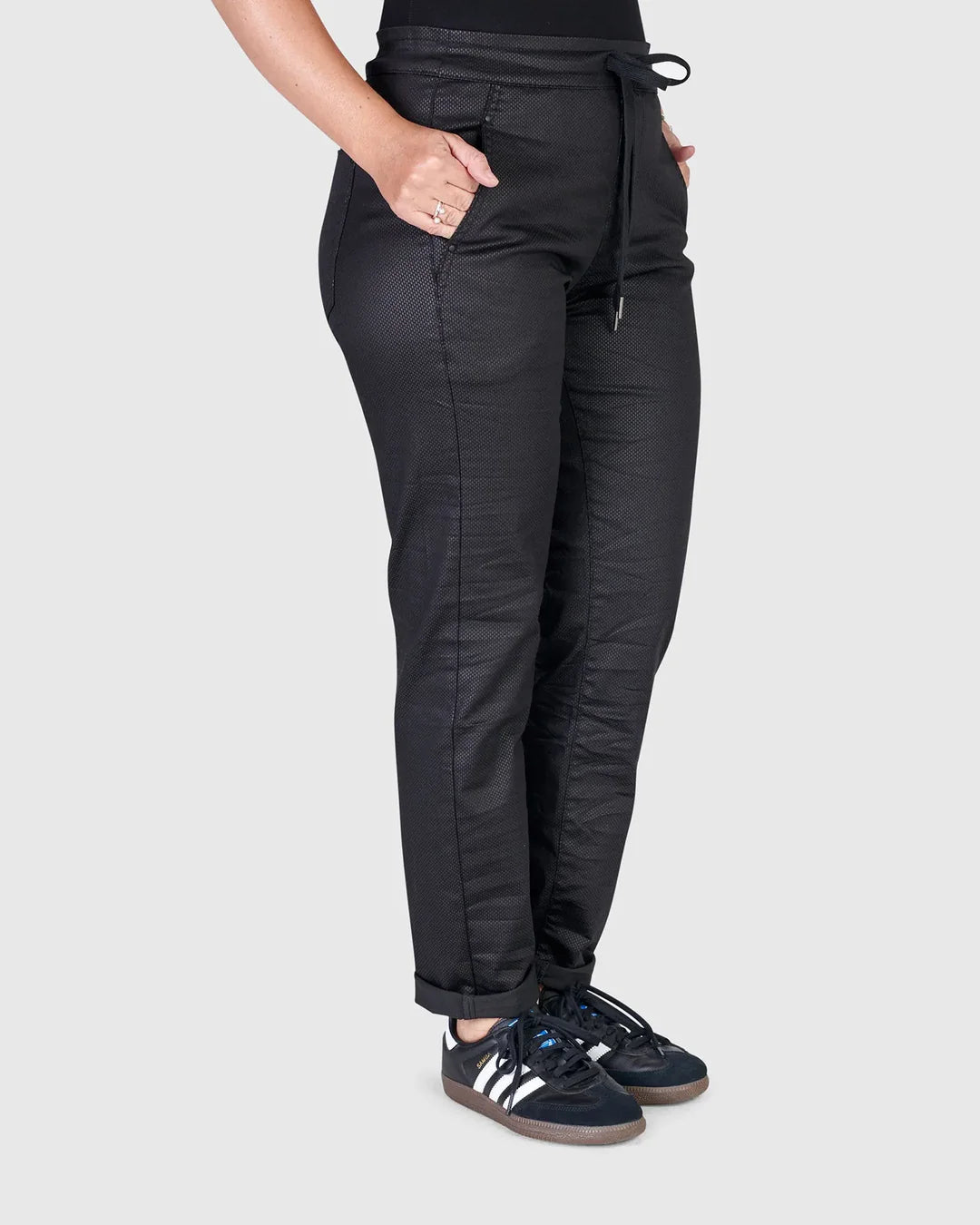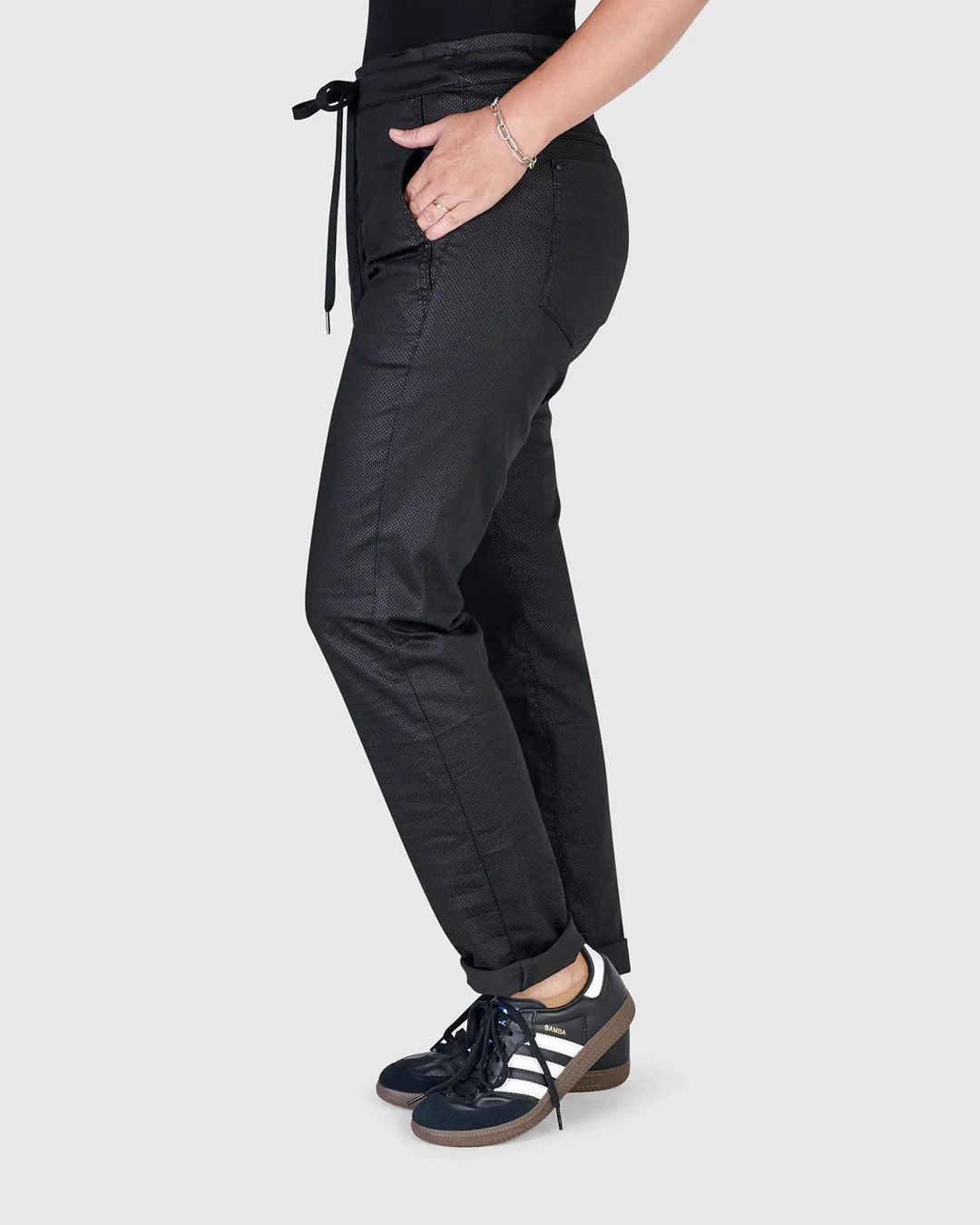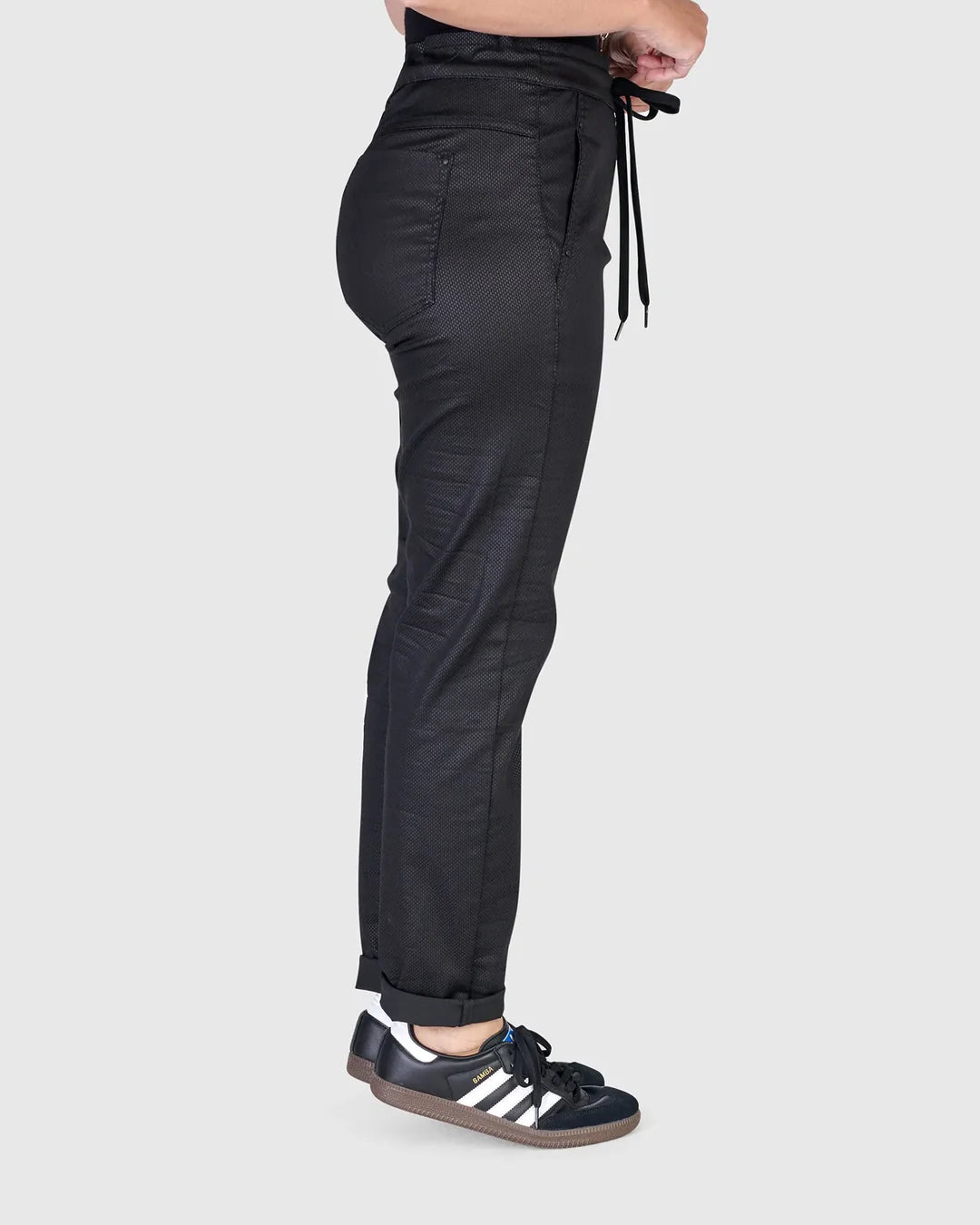 Our ultra-soft cult favorite in a soft stretch cotton blend with a sneaky snake pattern. Thanks to a flattering mid-rise waist and a more relaxed taper than skinny jeans, our beloved Iconics never feel skin-tight; just deliciously comfy. Drawstring stretch waist, mock fly, side pockets, yoked back with patch pockets, and rivet trim.