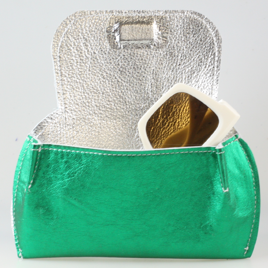 The Marla Sunglass Case: Metallics!: Emerald Inside / Silver Outside